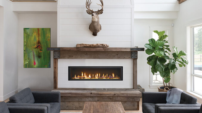 The 4415 HO gas fireplace brings you the very best in home heating and style with its sleek, linear appearance and impressively high heat output. With a long row of dancing flames and built-in fans, the 4415 is not only an excellent heater but a beautiful focal point in your home. Turn on the under-lighting that shines through the translucent glass floor and you’ve got magic whether the fire is on or off. This sophisticated fireplace can accompany any architectural style with a selection of fireback options along with realistic Driftwood and Stone Fyre-Art. The 4415 HO heats up to 2,100 square feet but can heat additional rooms in your home with the optional Power Heat Duct Kit.